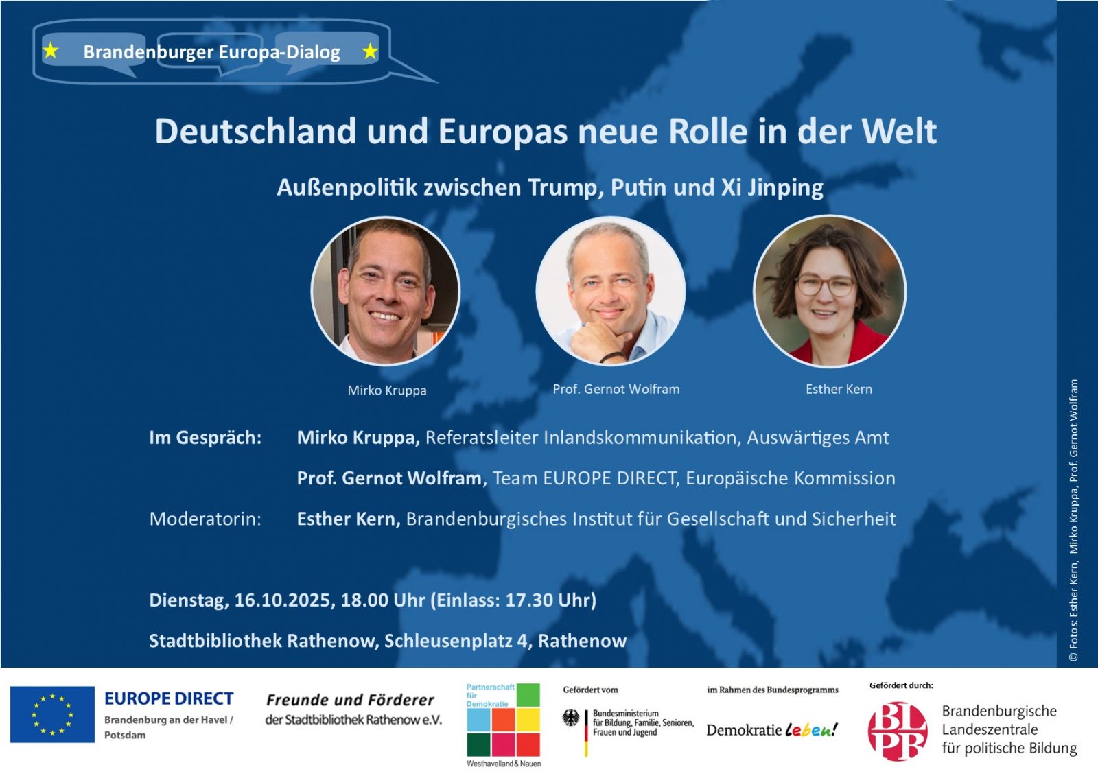 Europe Direct lädt ein zum Europadialog am 16.10.2025 ab 18 Uhr in der Stadtbibliothek in Rathenow